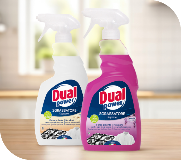 Włoska jakość, skuteczność i innowacja uczyniły z Dual Power jednego z liderów kategorii środków do mycia, czyszczenia i odplamiania.